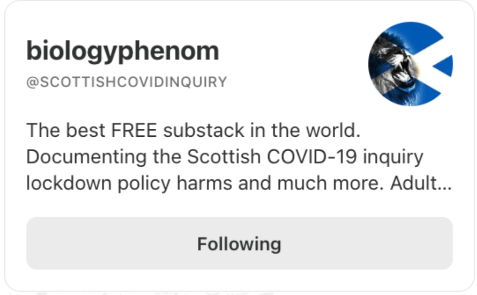 The man behind the Biologyphenom Substack was quick to extend his gratitude for yesterday’s article highlighting the abuses exposed in the Scottish Covid-19 Inquiry and directing our readers to his work.